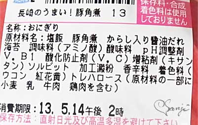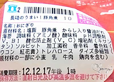 これは去年2012年12月17日の豚角煮おにぎりの原材料。