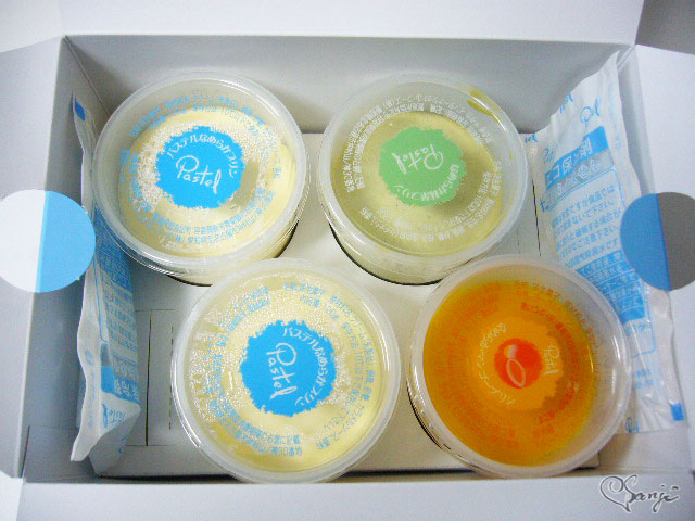 箱を開けると、パステルなめらかプリンとなめらかマンゴープリン、なめらか抹茶プリンが入っていました。